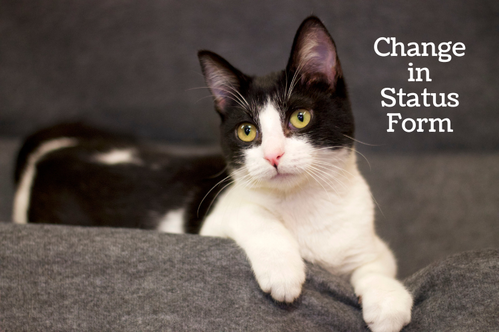 This form may be submitted when changes in status need to be made, such as spaying or neutering, transferring to another foster home or PetSmart, after adoption, or when cats need to be placed on hold for medical or other reasons.